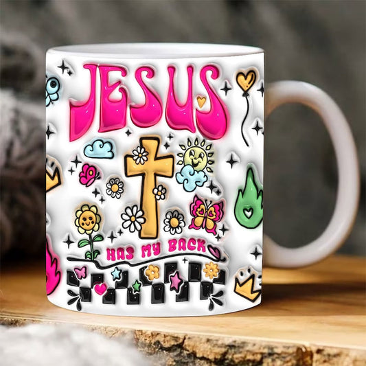 Christian 3D Mug, 3D Jesus Has My Back Inflated Mug, Bible Verse Inflated Mug, 3D Jesus Mug, Religious 3D Mug